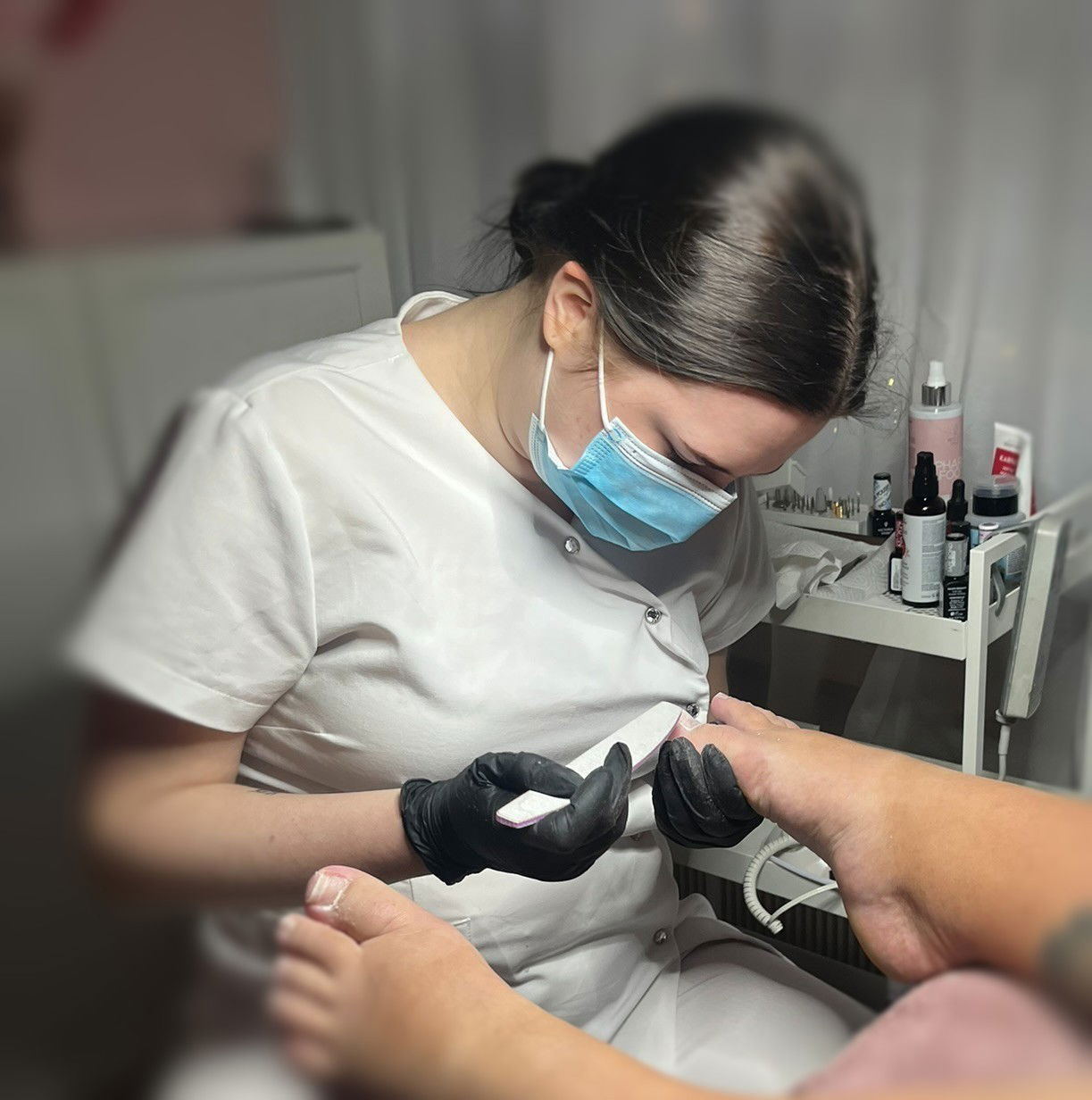 Palvelu sisältää: Jalkojen kylvetys, kovettumien poisto, kynsien ja kynsinauhojen siistiminen, jalkahieronta.